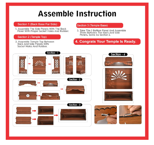 DIY-Friendly Installation: Experience the satisfaction of building your own sacred setup. The do-it-yourself assembly process makes it easy to create a customized devotional corner aligned with your preferences.