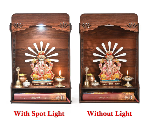 Compact & Adaptable Design: This LED-equipped wooden mandir is simple to assemble and can be placed on a tabletop or wall-mounted—perfect for both residential and office environments.
