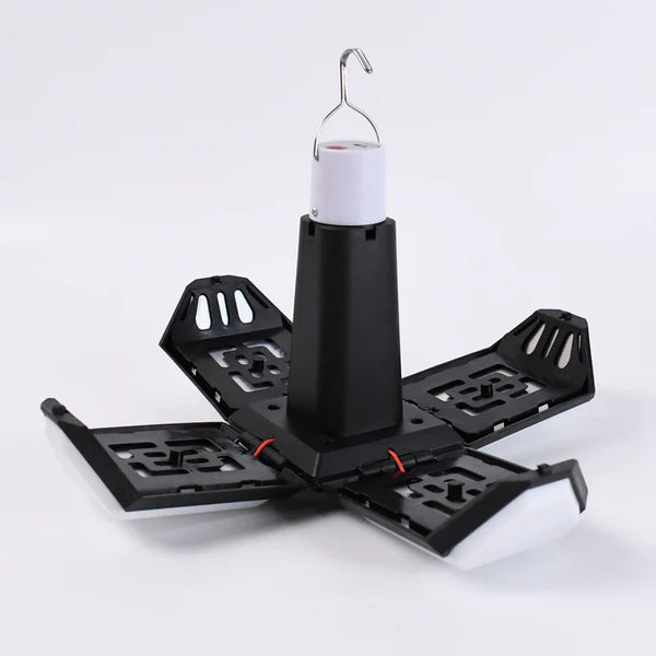 Equipped with a sturdy metal hanging hook, this lamp can be easily suspended inside tents, on branches, hooks, poles, or ceilings. Its durable, foldable, and weather-resistant construction makes it suitable for both indoor and outdoor use.