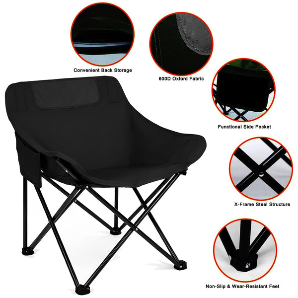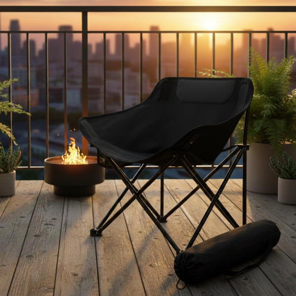 Designed for comfort and built for mobility, this Foldable Moon Chair is the perfect companion for travel, camping, and outdoor leisure. The ergonomic wide seating with a padded headrest ensures superior comfort even during extended sitting sessions. Crafted with durable Oxford fabric and a reinforced steel frame, it delivers reliable strength and long-term performance. Lightweight and easy to fold, it comes with a carry bag for effortless transport and storage. Ideal for camping trips, beach outings, fishing, picnics, festivals, or even as extra seating at home.