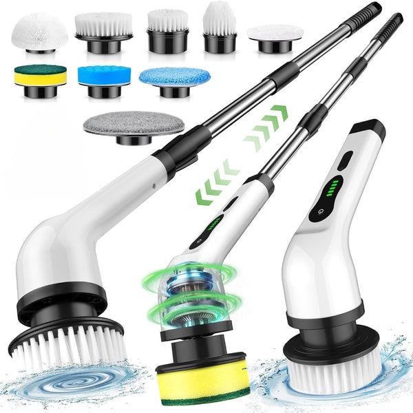 Includes 9 interchangeable brush heads tailored for various surfaces—from fragile glass to tough grout. Perfect for cleaning bathrooms, kitchens, floors, windows, and more.