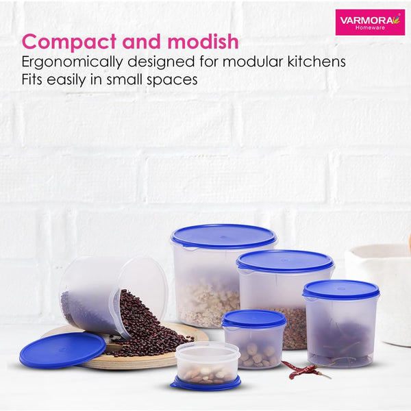Ideal for storing grains, pulses, snacks, flour, sugar, and other dry foods, this 6-piece modular set supports structured kitchen storage and space optimization.