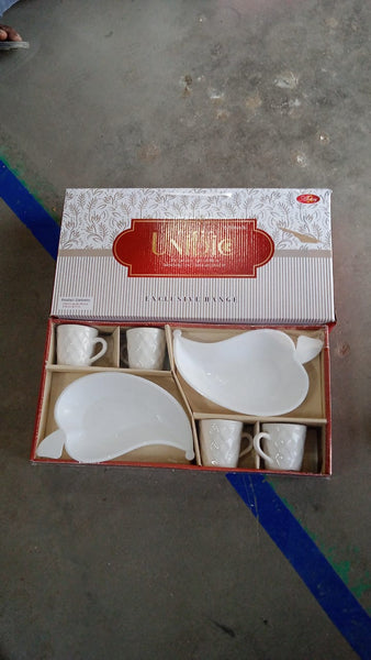 Unibic Ceramic Tea Cups With Plastic Leaf Shape tray Environmental Friendly Festival for Milk Cup, Coffee Cup, Tea Cup, Breakfast Cup, Drinking Mug or Outdoor for Household Gift For Birthday (6 Pcs Set)