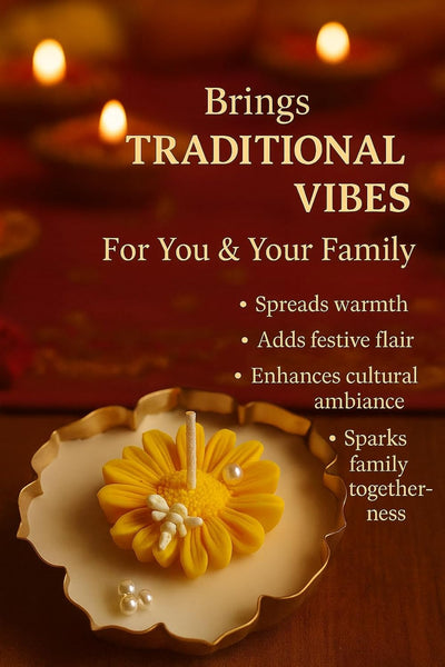 • 🌼 Elegant Lotus Uruli Design: Handcrafted tealight candle with a yellow daisy motif and delicate pearl accents for charming décor.